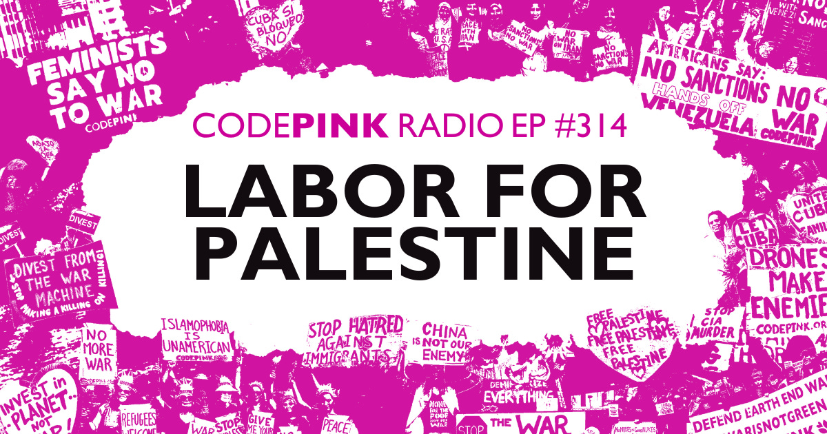 Episode 314: Labor for Palestine: "In this episode of CODEPINK Radio ""Labor for Palestine,"" host Marcy Winograd spotlights the role unions can play in stopping US-Israel genocide in Gaza. Chris Smalls, co-founder of the Amazon Labor Union and Freedom Flotilla participant, calls on the AFL-CIO and the ILWU, to refuse to load ships with weapons bound for Israel. On the second half of our program, Merrie Najimy co-founder of NEA Educators for Palestine, discusses why rank and file teachers reject the Anti-Defamation League's curriculum and training that conflate criticism of Israel genocide with antisemitism.