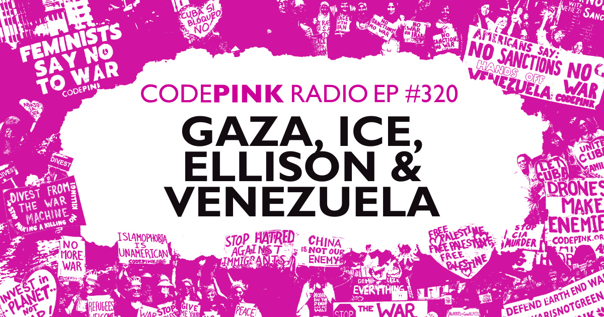 Episode 320: Gaza, ICE, Ellison & Venezuela: In this episode, co-hosts Marcy Winograd and Medea Benjamin debut Empire on the Rocks, a segment that analyzes top news stories through an anti-war lens. Topics include the U.S.-Israel ongoing genocide in Gaza, the Israel/ICE axis, troops in U.S. cities, and the Ellison/Trump/Rubio/Blair cabal.