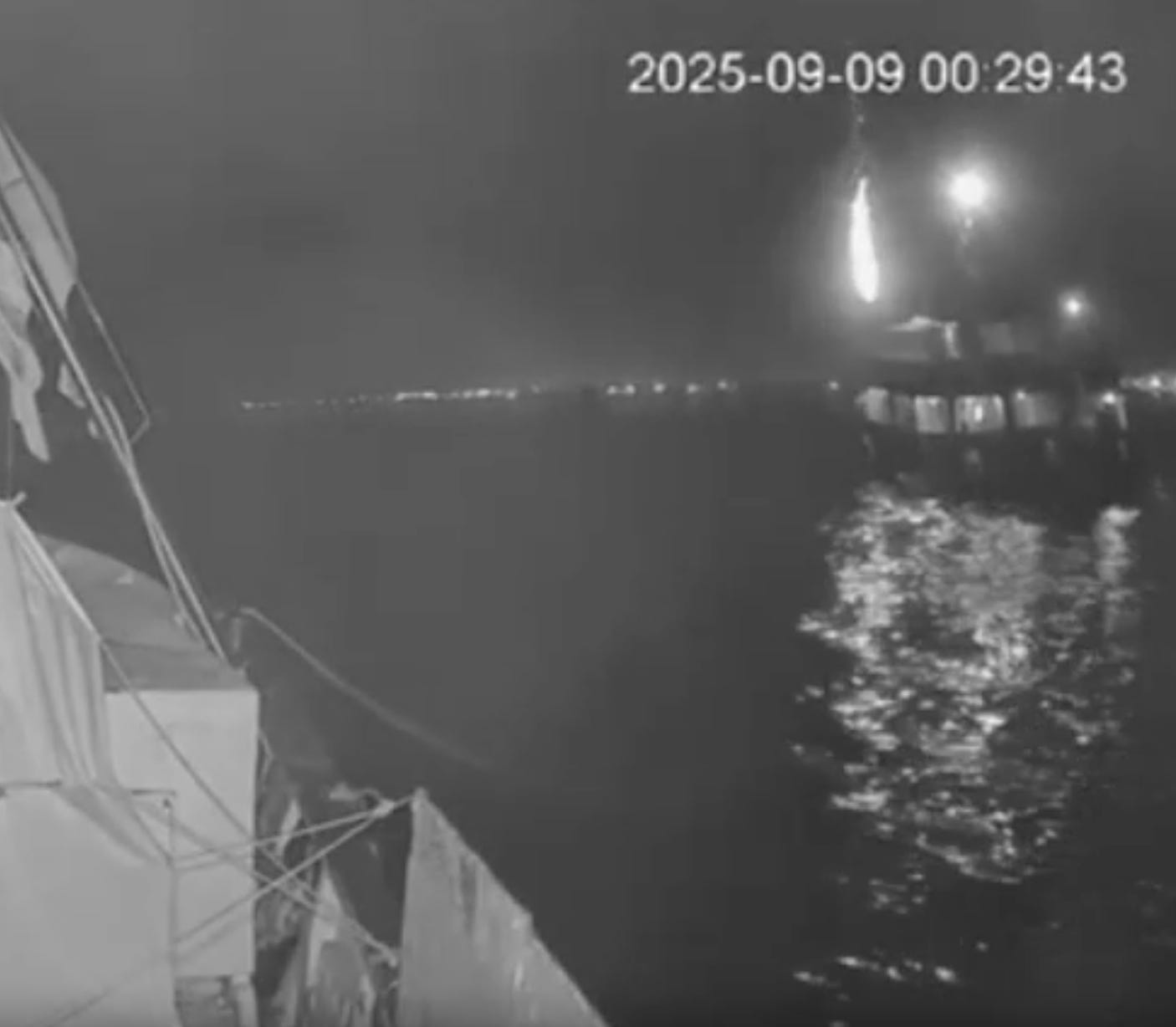Several hours ago in the evening of September 8, an explosive dropped from a drone hit “Familia, ”the lead ship of the Global Sumud Flotilla (GSF) anchored in national Tunisian waters off Port causing a fire on the bow of the ship. There were 5 people onboard as the crew and security team. No one was injured.